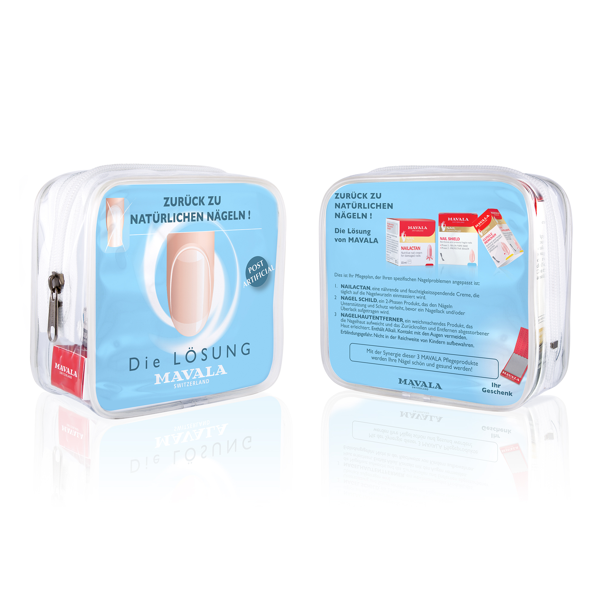 INGREDIENTS: NAILACTAN Water (Aqua), Caprylic/Capric Triglyceride, Isopropyl Myristate, Glyceryl Stearate, PEG-100 Stearate, Butylene Glycol, Cetyl Alcohol, Sorbitol, Octyldodecanol, Stearyl Alcohol, Panthenyl Triacetate, Phenoxyethanol, Lecithin, Glycine Soja (Soybean) Protein, Fragrance (Parfum), Ascorbyl Tetraisopalmitate, Chlorphenesin, Propylene Glycol, Ethylhexylglycerin, Sodium Benzoate, Pyridoxine Dipalmitate, Arachidyl Propionate, Retinyl Palmitate, Caprylyl Glycol, Acrylates/C10-30 Alkyl Acrylate Crosspolymer, Disodium EDTA, Tocopherol, Sodium Cocoyl Glutamate, Potassium Hydroxide, Ethyl Linoleate, Ethyl Linolenate, Ethyl Oleate, Simethicone, Soluble Collagen, Potassium Sorbate, Lactococcus Ferment, Polysorbate 65, Methylcellulose, Trisodium EDTA, Lactic Acid, Glucose, Urea, Alpha-Isomethyl Ionone, Hydroxycitronellal, Coumarin, Limonene, Citronellol, Geraniol. [F905/8] NAGELVERSTÄRKER Phase 1: Butyl Acetate, Ethyl Acetate, Nitrocellulose, Isopropyl Alcohol, Acetyl Tributyl Citrate, Phthalic Anhydride/Trimellitic Anhydride/Glycols Copolymer, Nylon-66, Stearalkonium Hectorite, Adipic Acid/Fumaric Acid/Phthalic Acid/Tricyclodecane Dimethanol Copolymer, Etocrylene, Citric Acid, Titanium Dioxide (CI 77891). [F908/3] Phase 2: Butyl Acetate, Ethyl Acetate, Nitrocellulose, Isopropyl Alcohol, Acetyl Tributyl Citrate, Phthalic Anhydride/Trimellitic Anhydride/Glycols Copolymer, Talc, Stearalkonium Hectorite, Adipic Acid/Fumaric Acid/Phthalic Acid/Tricyclodecane Dimethanol Copolymer, Methyl Methacrylate Crosspolymer, Citric Acid, Iron Oxides (CI 77491), Iron Oxides (CI 77499), Red 7 Lake (CI 15850). [F909/3] NAGELHAUTENTFERNER Water (Aqua), Laureth-4, Glycerin, Cetyl Acetate, Laureth-23, Potassium Hydroxide, Lanolin, Acetylated Lanolin Alcohol, Simethicone, Polysorbate 65, Methylcellulose. [915/3] NAGELHAUTCREME Lanolin, Petrolatum, Water (Aqua), Mineral Oil (Paraffinum Liquidum), Alcohol Denat., Fragrance (Parfum), Phenoxyethanol, Chlorphenesin, BHT, Tocopherol, Limonene, Linalool, Citronellol, Geraniol, Citral. [F914/6]